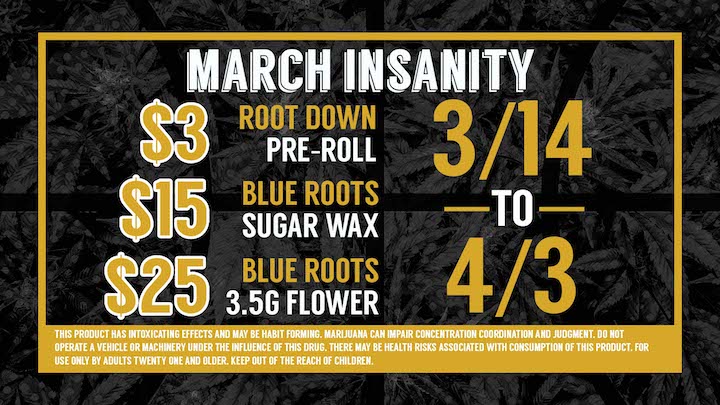 This March we’re celebrating the madness here at Cinder with our March Insanity sale. You’ll save like crazy with our $3 Root Down pre-rolls, $15 Blue Roots Sugar wax, and $25 Blue Roots eighths in addition to our already killer daily deals. To help you forget about your busted bracket, here are the top 10 items we recommend picking up here at Cinder.